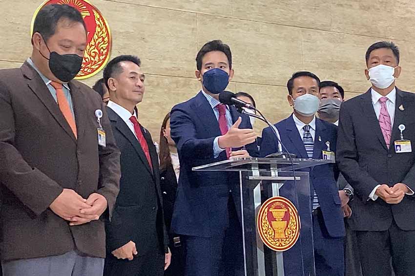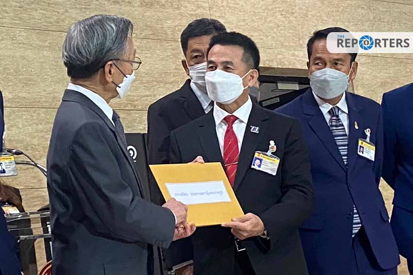 วันนี้ (28 ธ.ค. 65) สมาชิกสภาผู้แทนราษฎร (ส.ส.) พรรคร่วมฝ่ายค้าน นำโดย นพ.ชลน่าน ศรีแก้ว หัวหน้าพรรคเพื่อไทย นายพิธา ลิ้มเจริญรัตน์ หัวหน้าพรรคก้าวไกล นายสงคราม กิจเลิศไพโรจน์ หัวหน้าพรรคเพื่อชาติ นายนิคม บุญวิเศษ หัวหน้าพรรคพลังปวงชนไทย นายวิรัตน์ วรศสิริน รองหัวหน้าพรรคเสรีรวมไทย พ.ต.อ. ทวี สอดส่อง เลขาธิการพรรคประชาชาติ รวมถึง นายมงคลกิตติ์ สุขสินธารานนท์ หัวหน้าพรรคไทยศรีวิไลย์ ในฐานะฝ่ายค้านอิสระ