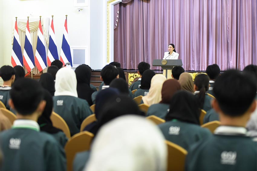 วันนี้ (29 ม.ค. 68) ที่ทำเนียบรัฐบาล นางสาวแพทองธาร ชินวัตร นายกรัฐมนตรี กล่าวมอบโอวาทเยาวชนผู้เข้าร่วมโครงการเยาวชนไทยหัวใจเดียวกัน (Belia Thai Sejiwa Sehati) รุ่นที่ 9 ของศาลยุติธรรม เยาวชนอายุระหว่าง 3 – 15 ปี ที่นับถือศาสนาอิสลาม มีภูมิลำเนาอยู่ในพื้นที่ 3 จังหวัดชายแดนภาคใต้