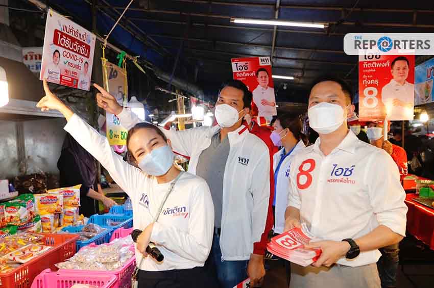 พรรคเพื่อไทย นำโดย นายวิชาญ มีนชัยนันท์ ประธานภาค กทม. และอดีตรัฐมนตรีช่วยว่าการกระทรวงสาธารณสุข นางพวงเพ็ชร ชุนละเอียด ผู้อำนวยการการเลือกตั้ง ส.ก. นายแพทย์พรหมินทร์ เลิศสุริย์เดช ที่ปรึกษาคณะกรรมการรณรงค์หาเสียงเลือกตั้ง ส.ก. นายดนุพร ปุณณกันต์ ประธานคณะกรรมการรณรงค์หาเสียงเลือกตั้ง ส.ก. นางสาวณหทัย ทิวไผ่งาม กรรมการบริหารพรรคและกรรมการรณรงค์หาเสียงเลือกตั้ง ส.ก. และ นายแพทย์ทศพร เสรีรักษ์ สมาชิกพรรคเพื่อไทยและอดีต ส.ส.แพร่ นางสาวขัตติยา สวัสดิผล อดีต ส.ส. บัญชีรายชื่อ พร้อมด้วย นายกิตติพงศ์ รวยฟูพันธ์ ผู้สมัคร ส.ก.เขตทุ่งครุ เบอร์ 8 ร่วมกันลงพื้นที่ชุมชนใต้สะพานโซน 1 เขตทุ่งครุ เพื่อรับฟังปัญหาจากประชาชนในพื้นที่และแลกเปลี่ยนแนวทางแก้ไขปัญหา โดยเฉพาะในช่วงการระบาดของโควิด-19 ตลอด 2 ปีที่ผ่านมาประชาชนเดือดร้อนอย่างหนัก เนื่องจากเข้าไม่ถึงระบบการรักษาและขาดแคลนยารักษาโรค