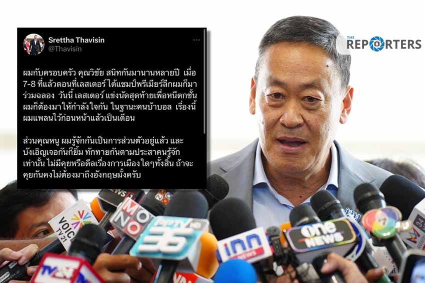 ‘เศรษฐา’ ลั่น ไม่มีดีลลับกับ ‘อนุทิน’ แค่ยิ้มทักทาย หลัง มีภาพทักทายกันในสนามบอล เผย มาให้กำลังใจทีมในฐานะคนบ้าบอล และแพลนไว้นานแล้ว
