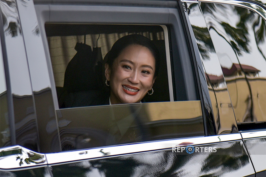‘แพทองธาร‘ ออกจากทำเนียบ หลัง คำวินิจฉัยศาล โบกมือให้สื่อมวลชน