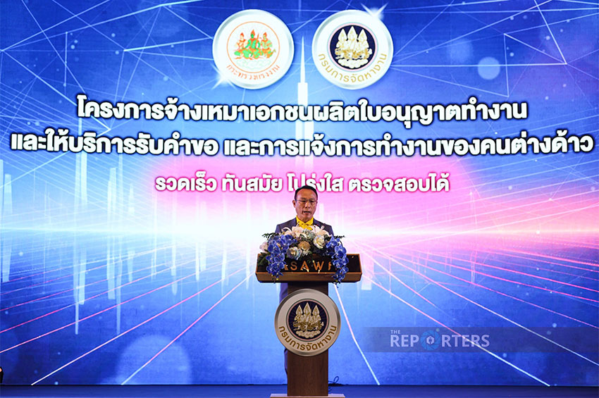 วันนี้ (30 ก.ค.68) นายสมชาย มรกตศรีวรรณ อธิบดีกรมการจัดหางาน เป็นประธานในพิธีแถลงข่าวโครงการจ้างเหมาเอกชนผลิตใบอนุญาตทำงานและให้บริการรับคำขอและการแจ้งการทำงานของคนต่างต้าว (Outsourcing Service) อย่างเป็นทางการ ณ โรงแรมอัศวิน แกรนด์ คอนเวนชั่น กรุงเทพมหานคร เพื่อมุ่งยกระดับการให้บริการด้านแรงงานต่างด้าวให้ทันสมัย สะดวก รวดเร็ว และโปร่งใสมากยิ่งขึ้น