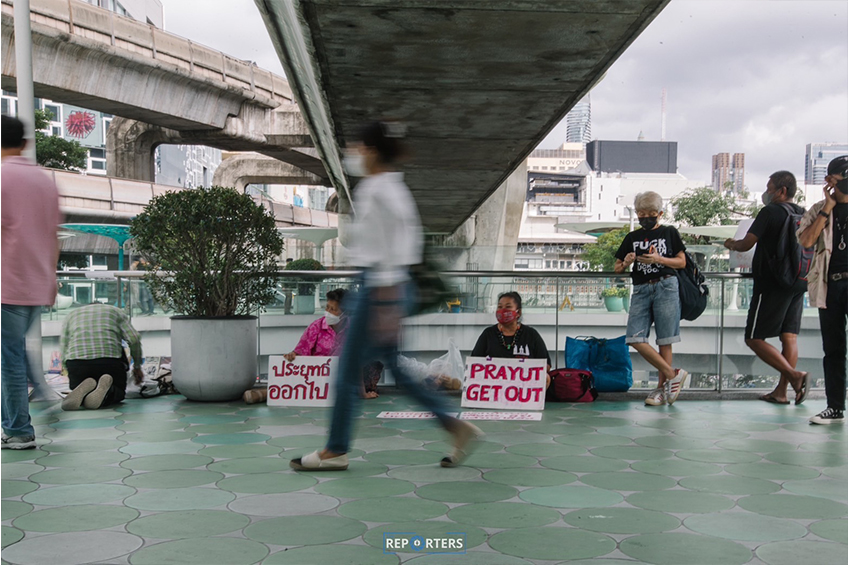 นางสาวธนพร วิจันทร์ เครือข่ายแรงงานเพื่อสิทธิประชาชน เป็นตัวแทนราษฎรอ่านคำแถลงการณ์ ใจความระบุว่า วาระการดำรงตำแหน่งนายกรัฐมนตรีของพลเอกประยุทธ์ สิ้นสุดลงตั้งแต่งแต่วันที่ 24 สิงหาคม 2565 หลังจากนั้นถือว่าพลเอกประยุทธ์ มีสถานะเป็นนายกฯ เถื่อน นายกฯ นอกรัฐธรรมนูญอย่างสมบูรณ์ รวมทั้งคณะรัฐมนตรีที่ขึ้นต่อนายกฯ ย่อมมีสถานะเป็นคณะรัฐมนตรีนอกกฎหมาย การใช้อำนาจ การดำเนินนโยบาย และคำสั่งของคณะรัฐมนตรีชุดนี้ ย่อมปราศจากอำนาจรองรับตามกฎหมาย