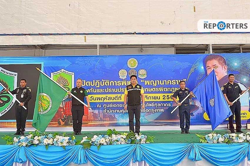 วันนี้ (30 พ.ย.66) ร้อยเอกธรรมนัส พรหมเผ่า รัฐมนตรีว่าการกระทรวงเกษตรและสหกรณ์ นายไชยา พรหมา รัฐมนตรีช่วยว่าการกระทรวงเกษตรและสหกรณ์ ร่วมเปิดปฏิบัติการพิเศษพญานาคราช เพื่อป้องกันและปราบปรามสินค้าเกษตรผิดกฎหมาย ที่ศูนย์เอกซเรย์และเทคโนโลยีศุลกากร สำนักงานศุลกากร ท่าเรือกรุงเทพ พร้อมมอบธงและปล่อยขบวนชุดปฏิบัติการพิเศษ 4 ชุดได้แก่ พญานาคราช (กระทรวงเกษตรและสหกรณ์) ฉลามขาว (กรมประมง) พญาไท (กรมปศุสัตว์) สารวัตรเกษตร (กรมวิชาการเกษตร) แสดงสัญลักษณ์ถึงความเข้มแข็งในการบูรณาการร่วมกันขจัดขบวนการลักลอบนำเข้าและส่งออกสินค้าเกษตรที่ผิดกฎหมาย นอกจากนี้ยังร่วมสังเกตการณ์และชมกระบวนการตรวจสอบสินค้าประมงนำเข้าทุกขั้นตอน ตั้งแต่การ X-Ray ตู้สินค้าประมงนำเข้าเพื่อวิเคราะห์ตรวจสอบสินค้าภายในตู้ และเปิดตู้คอนเทนเนอร์เพื่อตรวจสอบสินค้าประมงนำเข้า