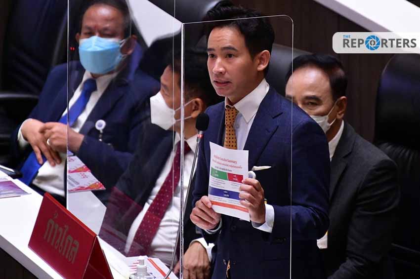 “ด้วยเหตุผลที่กล่าวมาข้างต้น จึงไม่สามารถรับหลักการวาระเเรกของร่างพระราชบัญญัติงบประมาณรายจ่ายประจำปีงบประมาณพ.ศ.2566 ในวงเงิน 3.185 ล้านล้านบาทได้ “ พิธา กล่าวยืนยันต่อสภาผู้แทนราษฎร