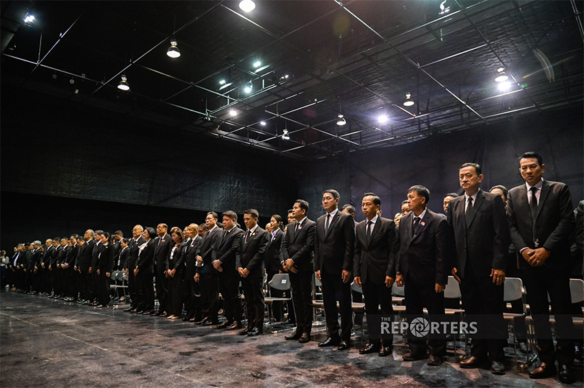 โดยก่อนเริ่มประชุม แกนนำ สส. และสมาชิกพรรคเพื่อไทย ได้ยืนสงบนิ่งแสดงความอาลัยเบื้องหน้าพระฉายาลักษณ์ สมเด็จพระนางเจ้าสิริกิติ์ พระบรมราชินีนาถ พระบรมราชชนนีพันปีหลวง