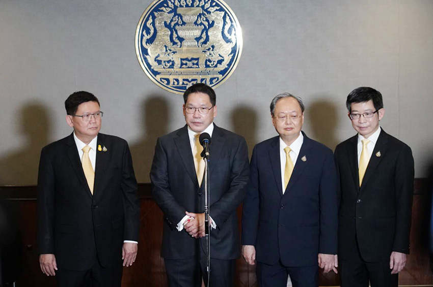 นายอุตตม เสาวนายน รัฐมนตรีว่าการกระทรวงการคลังพร้อมด้วยนายสนธิรัตน์ สนธิจิรวงศ์ รัฐมนตรีว่าการกระทรวงพลังงาน นายสุวิทย์ เมษินทรีย์ รัฐมนตรีว่าการกระทรวงการอุดมศึกษา วิทยาศาสตร์ วิจัยและนวัตกรรมและนายกอบศักดิ์ ภูตระกูล รองเลขาธิการนายกรัฐมนตรี เดินทางเข้าทำเนียบรัฐบาลเพื่อเข้ายื่นหนังสือลาออกจากตำแหน่งกับนายกรัฐมนตรีอย่างเป็นทางการผ่าน นายดิสทัต โหตระกิตย์ เลขาธิการนายกรัฐมนตรี ที่ตึกไทยคู่ฟ้า ซึ่งหลังจากยื่นหนังสือลาออกจากตำแหน่งทั้ง 4 คนได้นำพวงมาลัยขึ้นไปกราบสักการะท้าวพระพรหมบนตึกไทยคู่ฟ้ารวมถึงศาลตาศาลยาย สิ่งศักดิ์สิทธิ์ประจำทำเนียบรัฐบาลเพื่อบอกกล่าว ว่าได้หมดหน้าที่ในการทำงานให้กับรัฐบาลนี้แล้ว