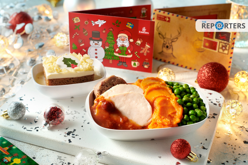 ตลอดทั้งเดือนธันวาคมนี้ บนเครื่องบินของสายการบินเอมิเรตส์ จะเสิร์ฟด้วยอาหารและของว่างตามเทศกาลในทุกห้องโดยสาร พร้อมประดับไฟคริสต์มาสสีเขียวและสีแดง โดยผู้โดยสารชั้นหนึ่ง และชั้นธุรกิจสามารถดื่มด่ำ ไปกับอาหารคริสต์มาสแบบดั้งเดิม ซึ่งมีตั้งแต่กุ้งลายเสือหมักมะนาวและสมุนไพร เสิร์ฟพร้อมสลัดยี่หร่าและซอสมารีโรส ไปจนถึงแซลมอนย่างกับครีมมัสตาร์ด ส่วนผู้โดยสารในชั้นประหยัดพรีเมียม สามารถอิ่มอร่อยไปกับเมนูนี้ได้เช่นกัน