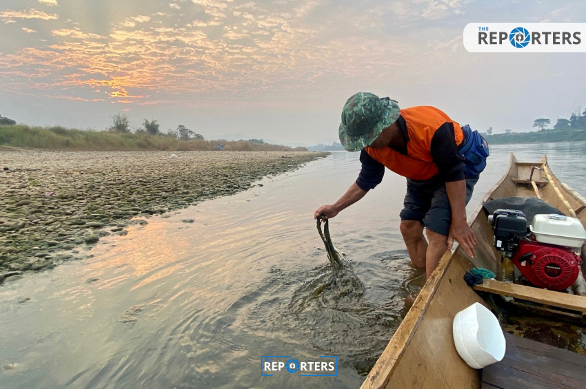 ‘ลุงตา’ เจ้าของเรือหางยาว นัดแนะกับผู้สื่อข่าว The Reporters เพื่อที่เราจะได้ออกเรือในเช้าวันถัดมาจากชายฝั่งท่าเรือบ้านหาดไคร้ ตำบลเวียง อำเภอเชียงของ จังหวัดเชียงราย ออกไปสู่มหานทีแห่งเอเชียอาคเนย์
