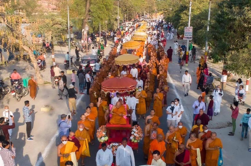 ก้าวเข้าสู่ปีที่ 14 กับงานสมโภชและนมัสการพระบรมสารีริกธาตุ ณ เมืองกุสินารา ประเทศอินเดีย อัญเชิญเครื่องราชสักการะ และพระบรมสารีริกธาตุจากมหาธาตุเจดีย์ วัดไทยกุสินาราเฉลิมราชย์ ขึ้นสู่ริ้วขบวน เคลื่อนไปยังสาลวโนทยาน สถานที่ดับขันธปรินิพพานและมกุฎพันธนเจดีย์ สถานที่ถวายพระเพลิงพระพุทธสรีระของพระพุทธเจ้า โดยมีสมเด็จพระมหาธีราจารย์ เจ้าอาวาสวัดพระเชตุพนวิมลมังคลาราม ประธานสำนักงานกำกับดูแลพระธรรมทูตไปต่างประเทศ จุดเทียนสัตบรรณ และกล่าวนำถวายเครื่องราชสักการะ สวดมนต์บูชา อัญเชิญเครื่องราชสักการะ พระมหาเถรานุเถระถวายน้ำสรงพระราชทาน เถราภิเษกพระพุทธบาท ท่ามกลางพุทธศาสนิกชนชาวไทยที่เข้าร่วมนับพันคน และคณะสงฆ์เดินธุดงค์ธรรมยาตราตามรอยบาทพระศาสดา พุทธภูมิอินเดีย-เนปาล รุ่นที่ 8 จำนวน 95 รูป