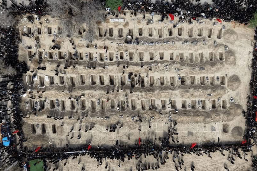 สถานทูตอิหร่านประจำประเทศไทย เผยแพร่ภาพพิธีฝังร่างเด็กนักเรียนและครูกว่า 160 คน ในเมืองมีนับ ที่เสียชีวิตจากการโจมตีของสหรัฐฯและอิสราเอล