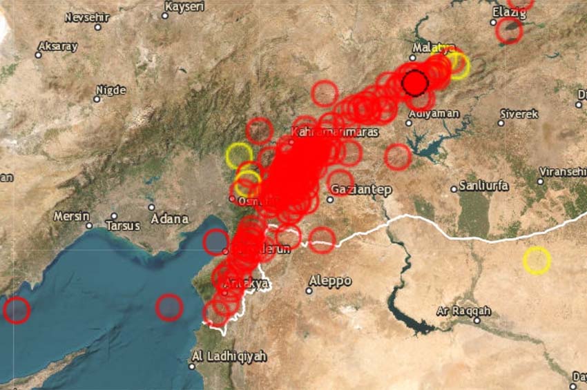 วันนี้ (6 ก.พ. 66) เวลา 18.00 น. EMSC รายงานข้อมูลแผ่นดินไหวขนาด 7.8 ทางตะวันออกเฉียงใต้ของตุรกีติดกับพรมแดนซีเรีย โดยล่าสุดมีรายงานว่าครึ่งชั่วโมงที่แล้วเกิดอาฟเตอร์ช็อกขนาด 7.7 และตามด้วยขนาด 6 หลังจากนั้นอีก 12 นาที โดยนับตั้งแต่เกิดเหตุแผ่นดินไหวช่วงเช้าวันนี้ตามเวลาประเทศไทย เกิดอาฟเตอร์ช็อกขนาดมากกว่า 3 ไปแล้วกว่า 100 ครั้ง