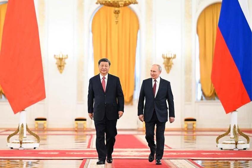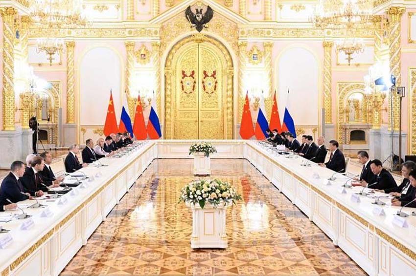 ปูตินจัดพิธีต้อนรับสีจิ้นผิงอย่างเป็นทางการ โดยทั้งสองร่วมการประชุมแบบกลุ่มเล็กและกลุ่มใหญ่ รวมถึงลงนามในแถลงการณ์ร่วมของสาธารณรัฐประชาชนจีนและสหพันธรัฐรัสเซียว่าด้วยการกระชับสถานะหุ้นส่วนเชิงยุทธศาสตร์รอบด้านแห่งความร่วมมือในยุคใหม่ และแถลงการณ์ร่วมของประธานาธิบดีแห่งสาธารณรัฐประชาชนจีนและประธานาธิบดีแห่งสหพันธรัฐรัสเซียว่าด้วยแผนพัฒนาในด้านสำคัญของความร่วมมือทางเศรษฐกิจจีน-รัสเซียก่อนปี 2030